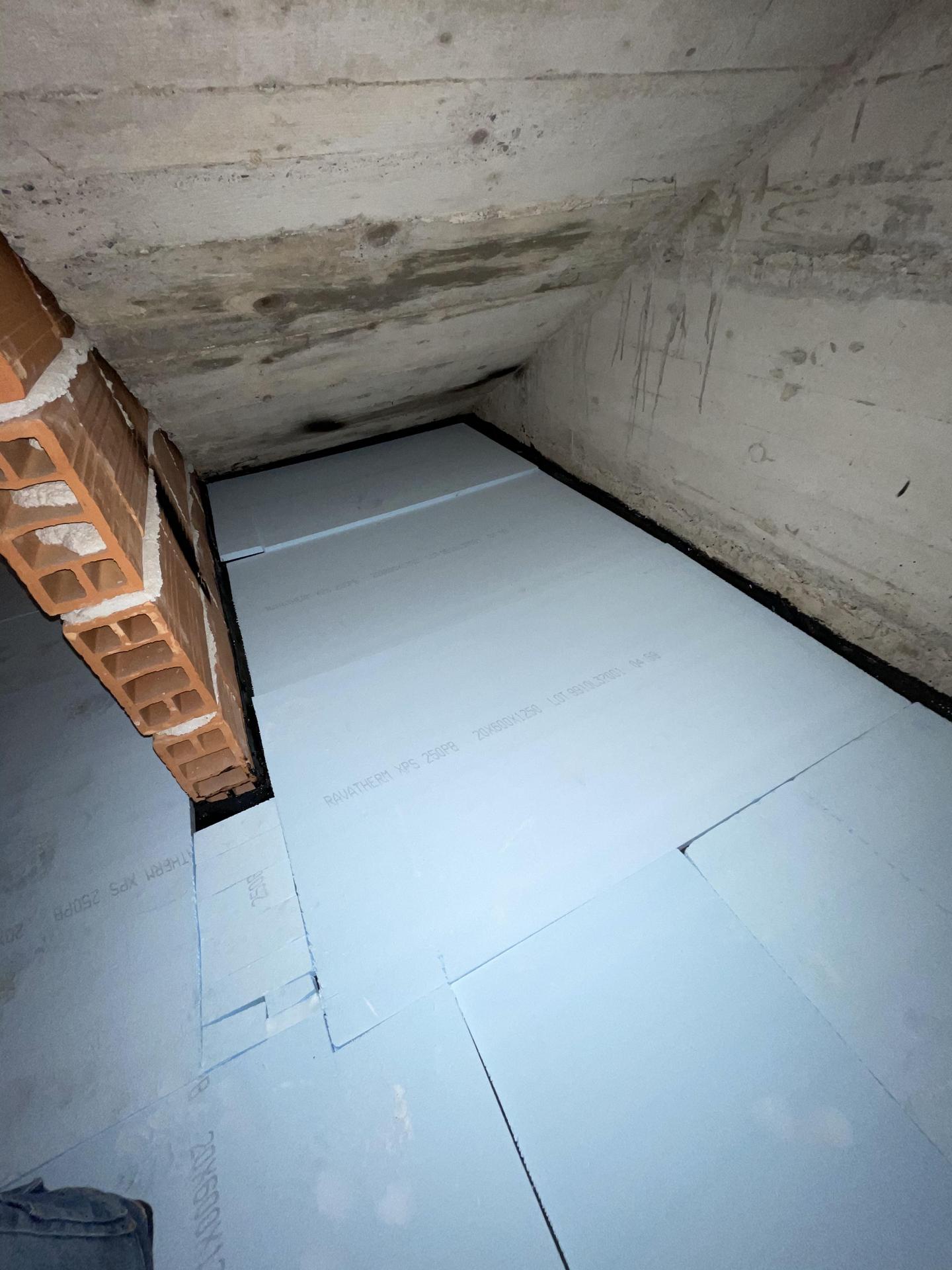 Ukoliko se radi o temeljnoj ploči koja je na trakastim temeljima obrada hidroizolacije ide na gornjoj površini temelja horizontalnim polaganjem, dok vertikalna oblaganja idu na vanjskoj strani između temelja i zidova kako ne bi došlo do kapilarne vlage. U nekim situacijama je mogućnost ugradnje brtujuće trake između temelja i zidova.